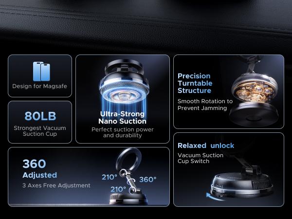 UGREEN Vacuum Magnetic Car Phone Holder,Car Phone Mount, 360° Adjustable for Magsafe Car Holder Foldable Suction Phone Mount for Car, for Garmin Gps/Mirror/Smooth Surface, for Iphone 17 16 Pro Max 15, and Android, Labor Day Sale